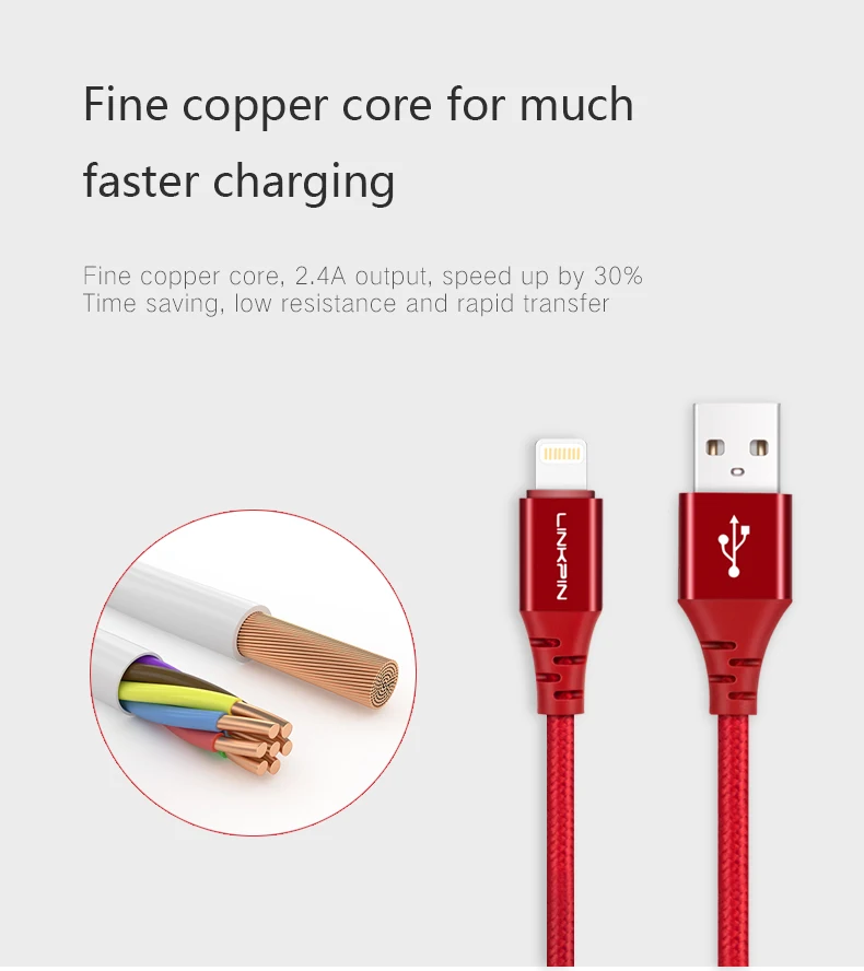 Braided 1.5m Mfi certified fast charge 2.4A data cable for iPhone/iPod/iPad