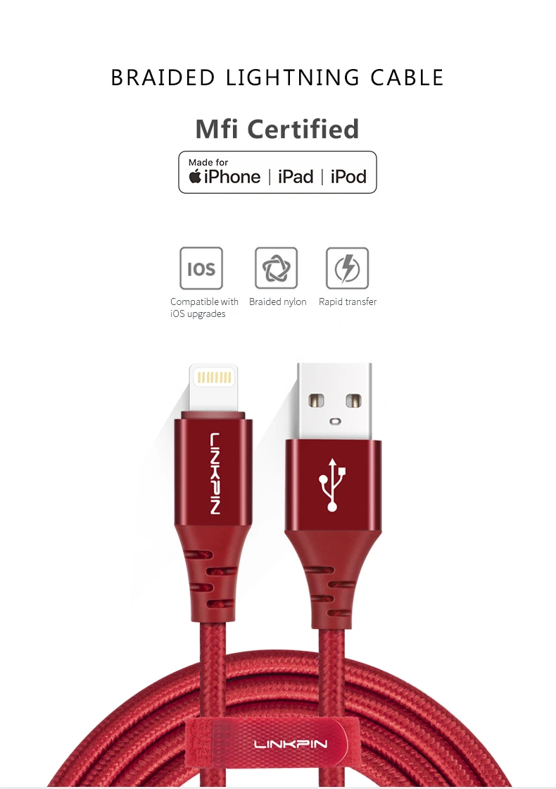 Your location:Home > Bayko Technology (Shenzhen) Co., Ltd. > 编织1.5m Mfi认证快充2.4A数据线,适用于iPhone/iPod/iPad