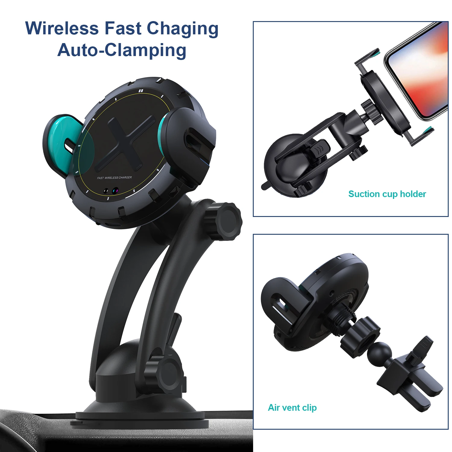 automatic clamping wireless car charger mount car mount fast charger car holder 2019