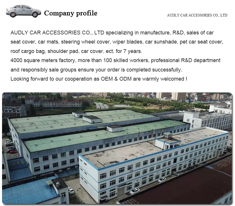 A: AUDLY CAR ACCESSORIES CO., LTD is a manufacturer and trading company.We are owning a factory with 4000 square meters and an office with 200 square meters. OEM is the main production pattern and there are many kinds of hot sale designs for your choice.