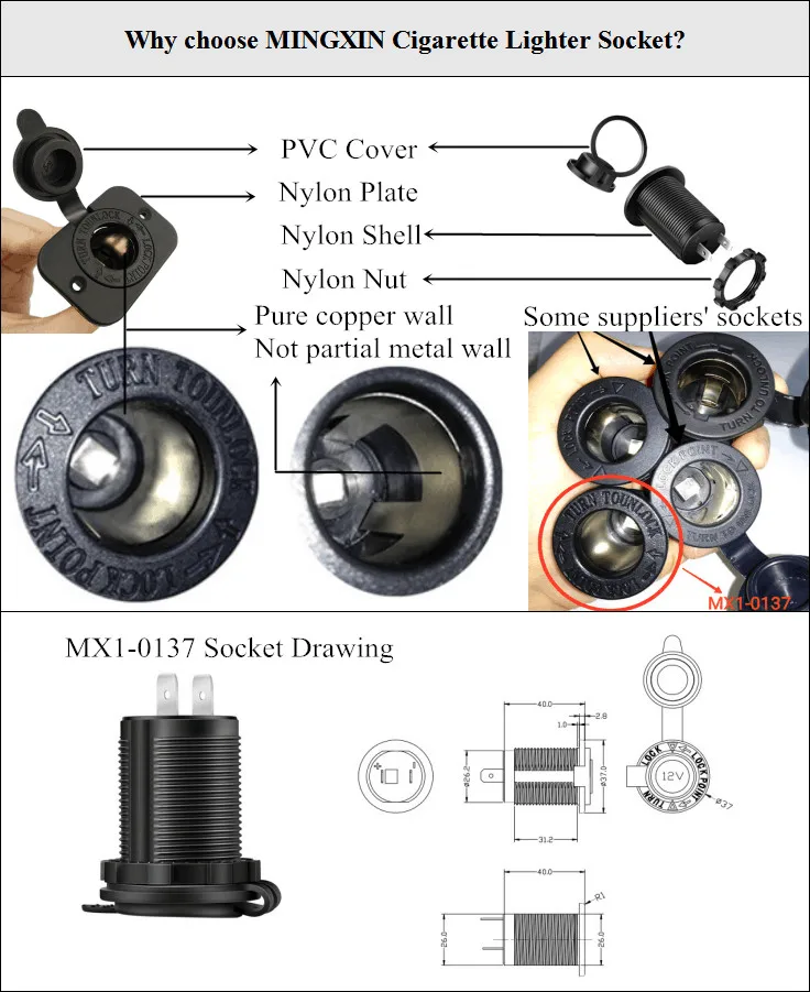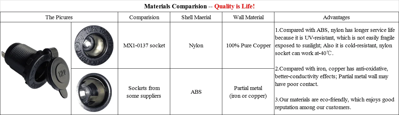 | 1. | Our car cigarette female socket is of high quality |