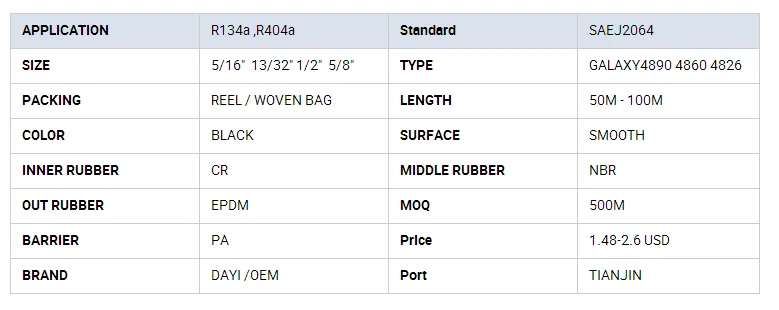Dayi factory wholesale high quality R134A auto parts automotive rubber air conditioning hose