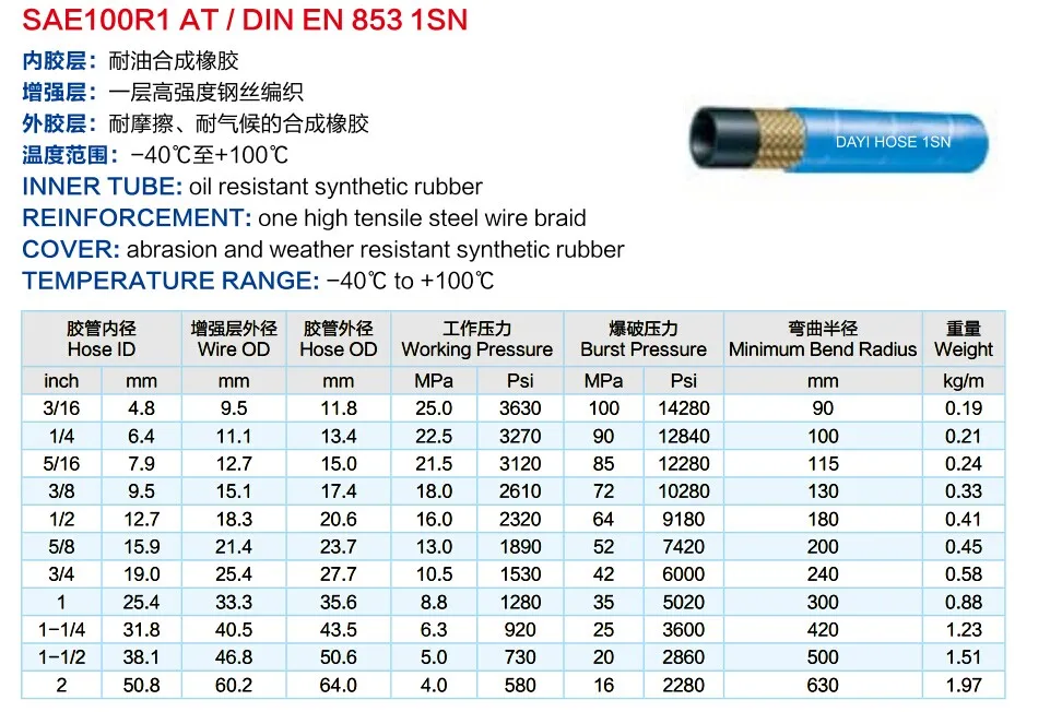 The Best Quality SAE100R1 Industrial Hydraulic Hose