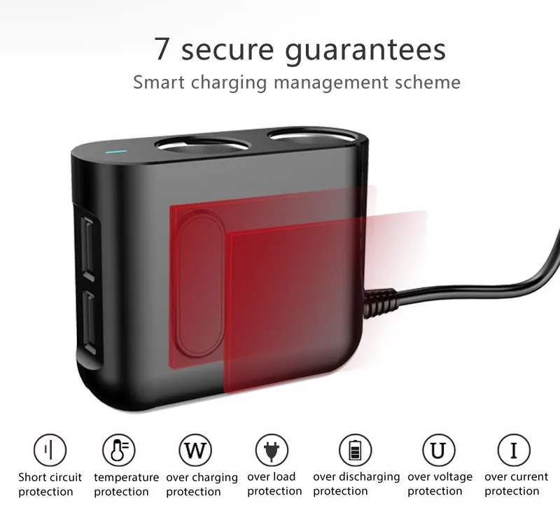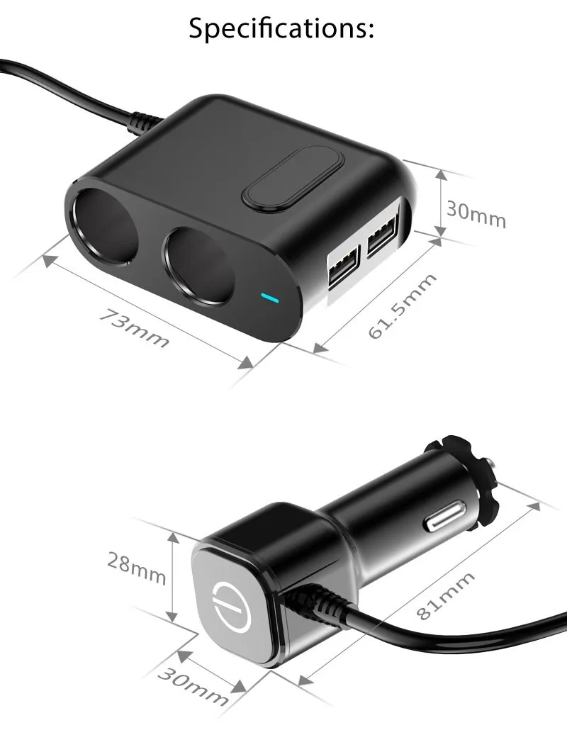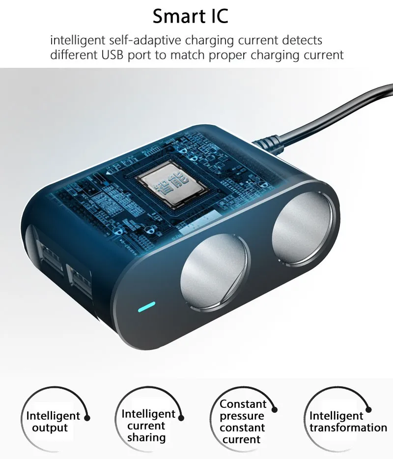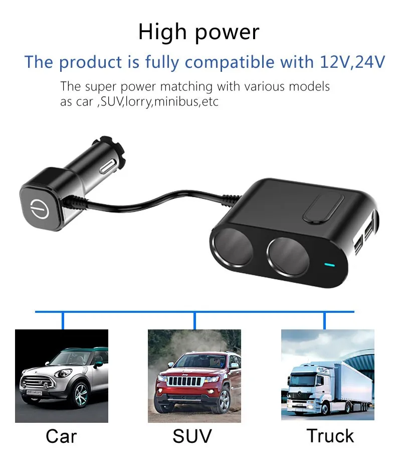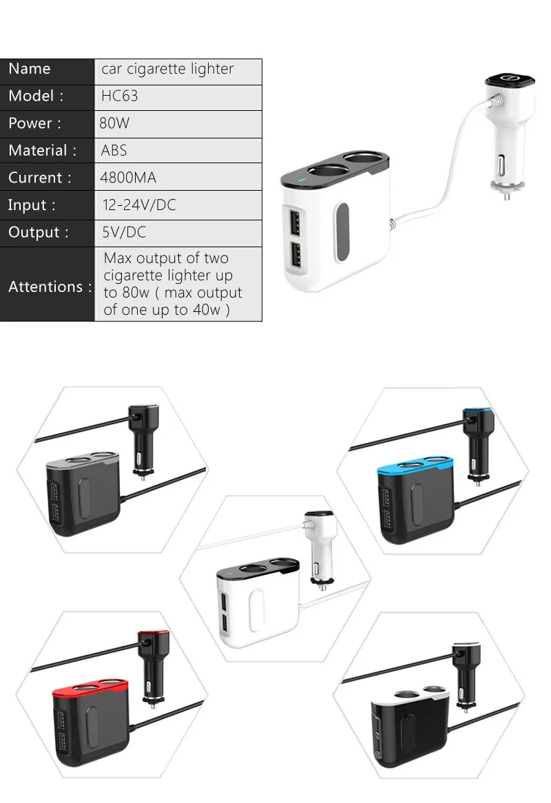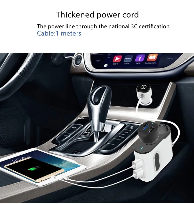2019 phone accessories mobile 2 car cigarette lighter dual port 7.5W/18W 2.4A charger adapter with USB-C CABLE