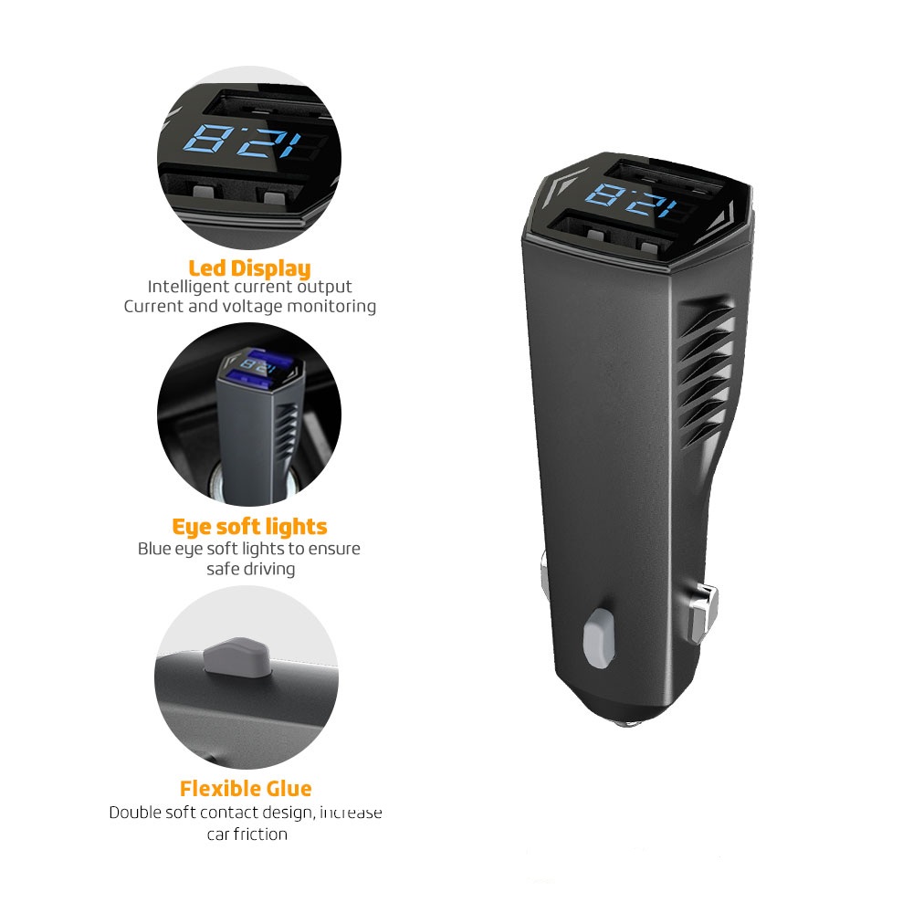 mobile phone accessories car charger dual usb 4.8A led display car voltage car lighter smartphone support