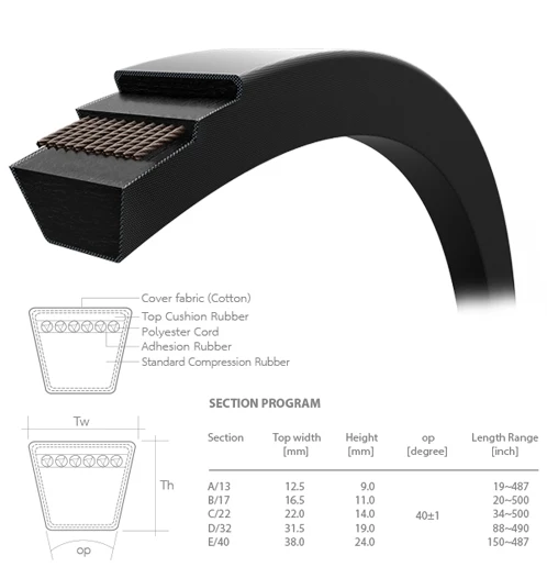 Our wrapped belt is different from the technology of ordinary triangular belt, it is manufactured using the technology of raw edge v belt. Its principal part is made of oil proof and best heat resistance compound rubber, and the framework is made of special polyester stiff cord.