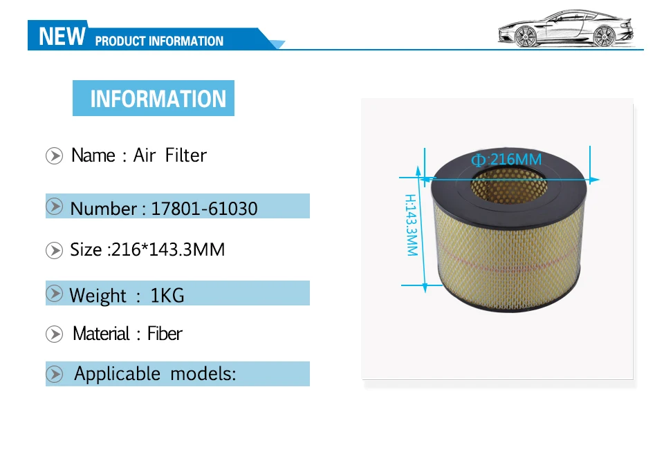 gzyzx Air Filter Element For Toyota LAND CRUISER 1986-2009 / DYNA 200 1988-1993 / COASTER 1993-2015 OEM:17801-61030