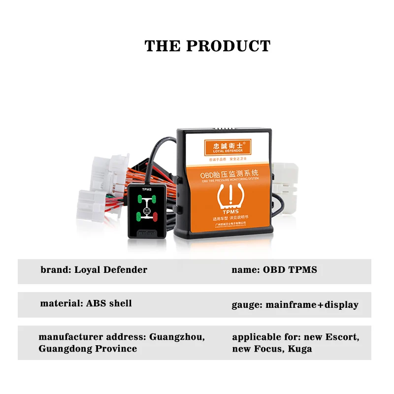 1. This product fits for Loyal Defender smart car Ford new Focus new Escort Kuga OBD TPMS tire pressure monitoring system real-time intelligent monitoring OBD sensor free auto security alarm system. Different car model apply different product, before place order, please mark your car model & which year to avoid buying wrong product